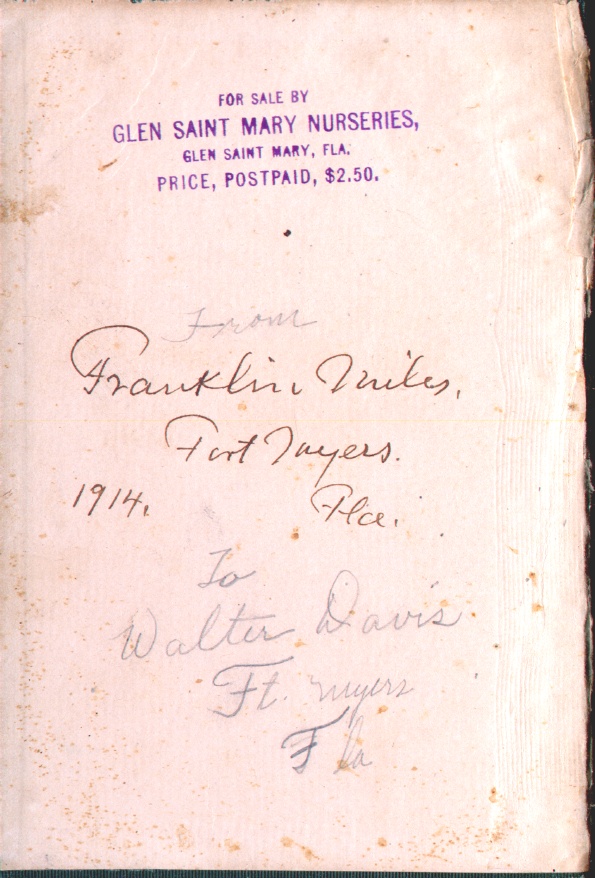 This is the inside page from the 1904 edition of a book Citrus Fruit and their Culture written by Hardrada Harold Hume that my grandfather K. Walter Davis got from Dr. Franklin Miles.