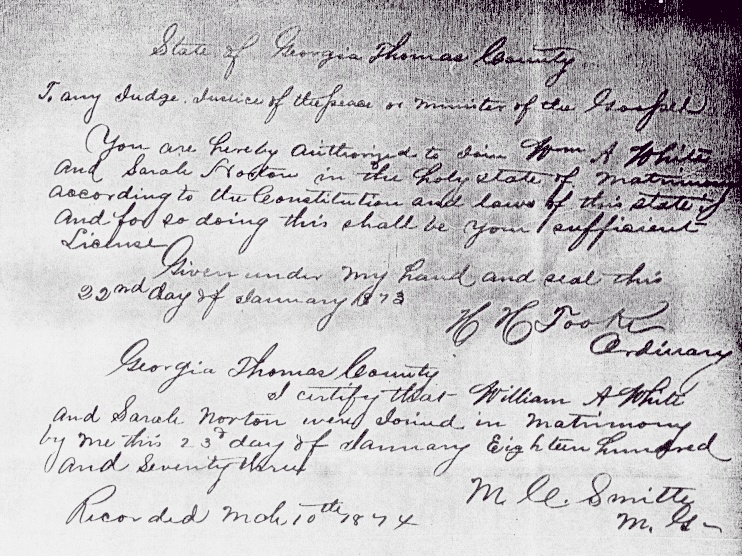 G. White and Winnifred Barwick of Thomas County, Georgia, and