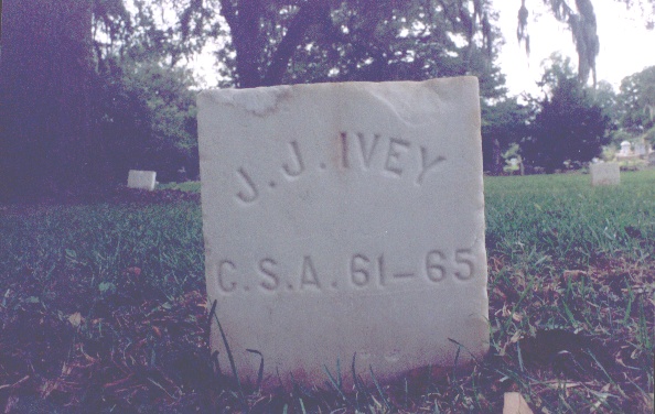 James Ivey was enrolled in the 10th Florida Infantry, Company E, at Sumterville on 14 September 1861 and died of disease at Tallahassee on 29 March 1862. Source: Hartman and Coles, Biographical Rosters of Florida's Confederate and Union Soldiers, 1861-1865, vol. III, p. 1047.