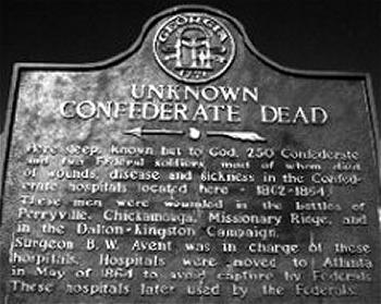 The Confederate Cemetery in Kingston now harbors only two Union soldiers, the others moved to the National Cemetery (more) in Marietta (history); 249 unknown Confederate soldiers and two known Confederates. The annual Kingston Confederate Memorial Service is the oldest continuous memorial service in the nation.